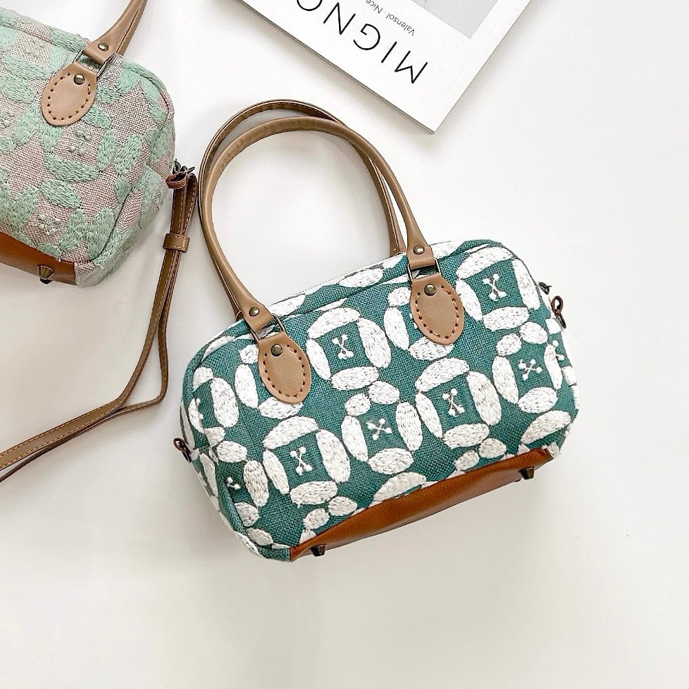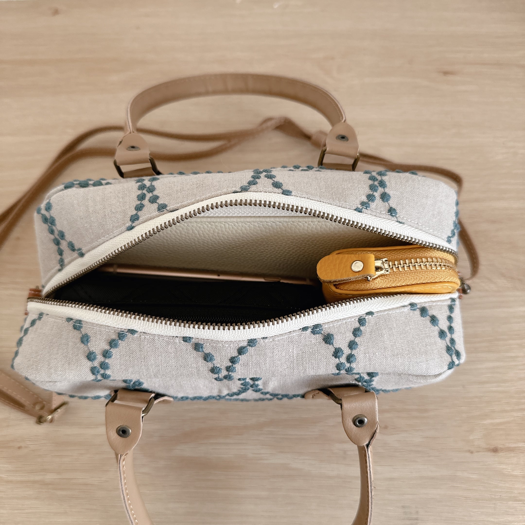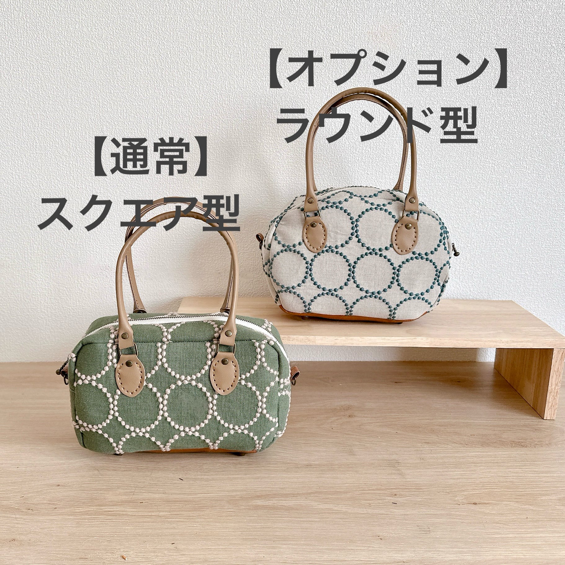 そんな生地を使った2ウェイ仕様のミニボストンバッグに、今年流行の横長スクエアが出来ました
