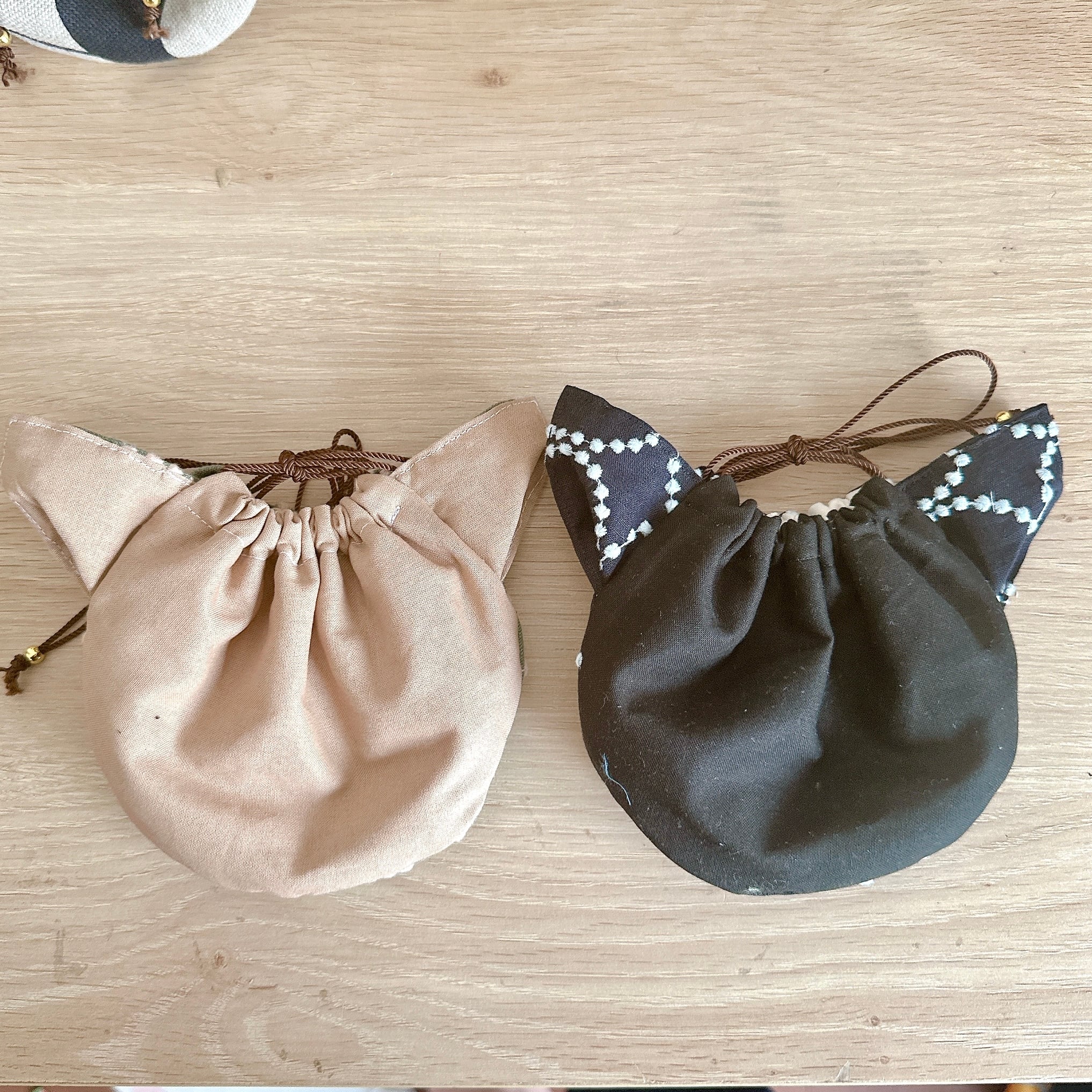 可愛い猫耳のついた巾着ポーチです