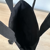 前面はミナペルホネンの刺繍生地、後面は黒無地の帆布生地でお作りしております