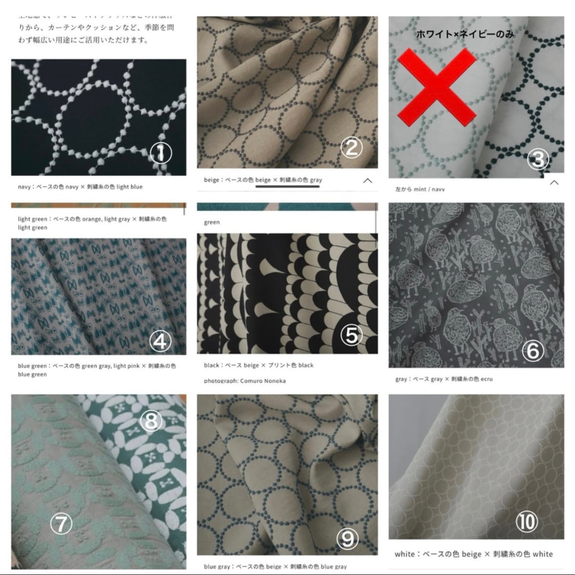 生地変更をご希望の場合には画像①〜⑰よりお選びいただき、備考欄へご記載ください