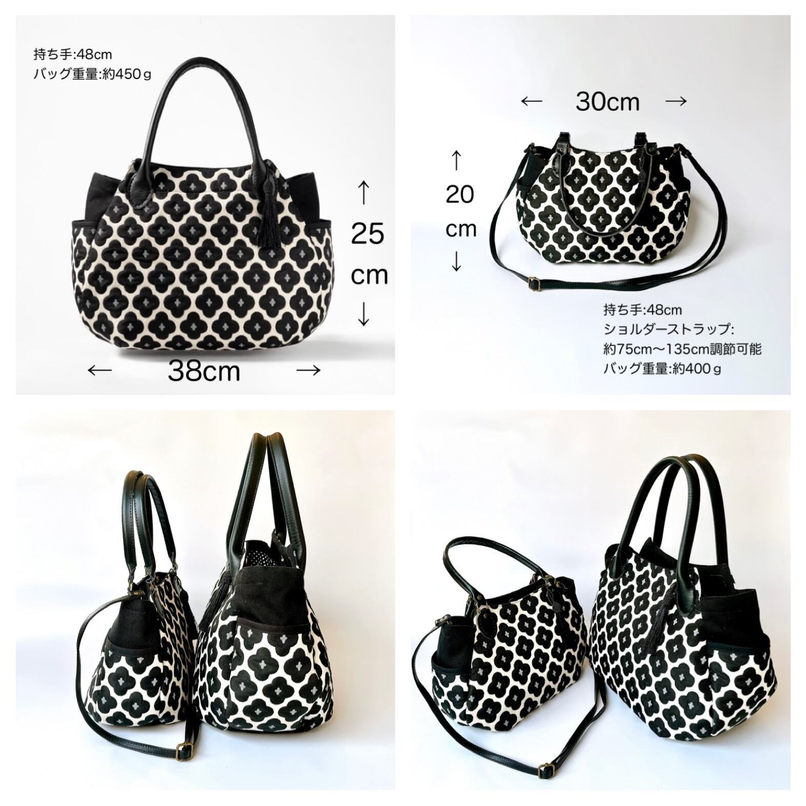 表は白地に黒のお花柄、裏地は黒地に白のお花柄になっております
