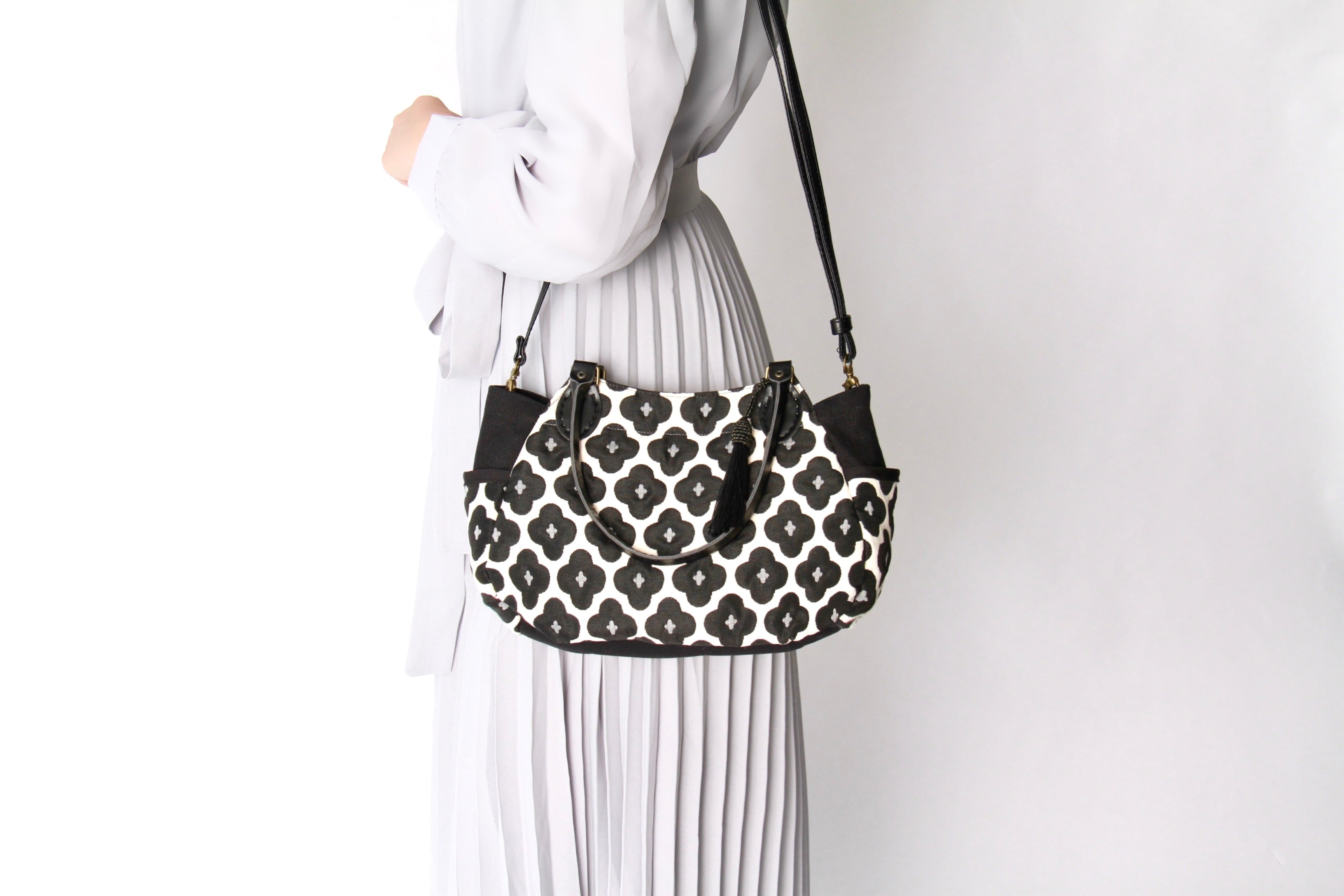 着脱可能なバッグチャームは黒色のタッセルをお付けいたします