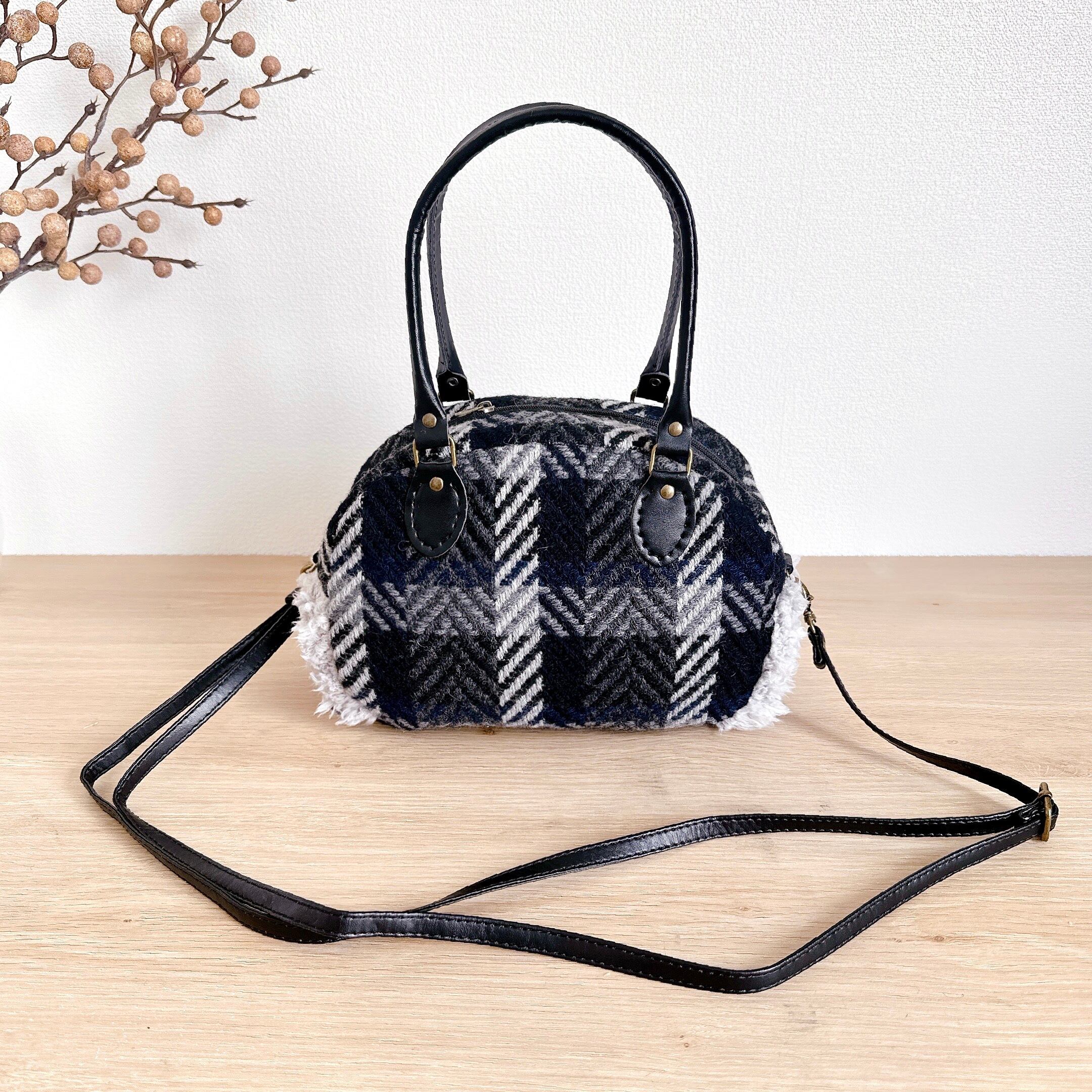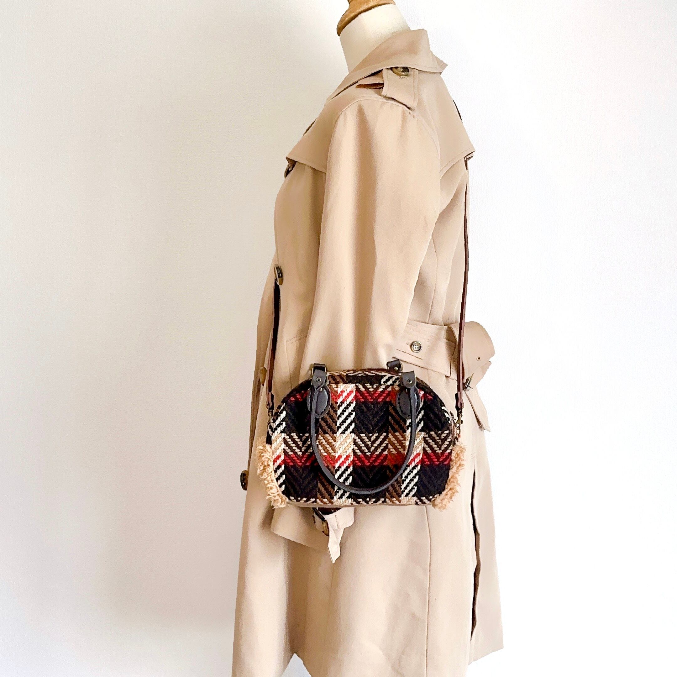 最高級国産ウールツイードはざっくりと織られた大柄チェックにヘリンボーンを合わせたレトロ感がおしゃれ