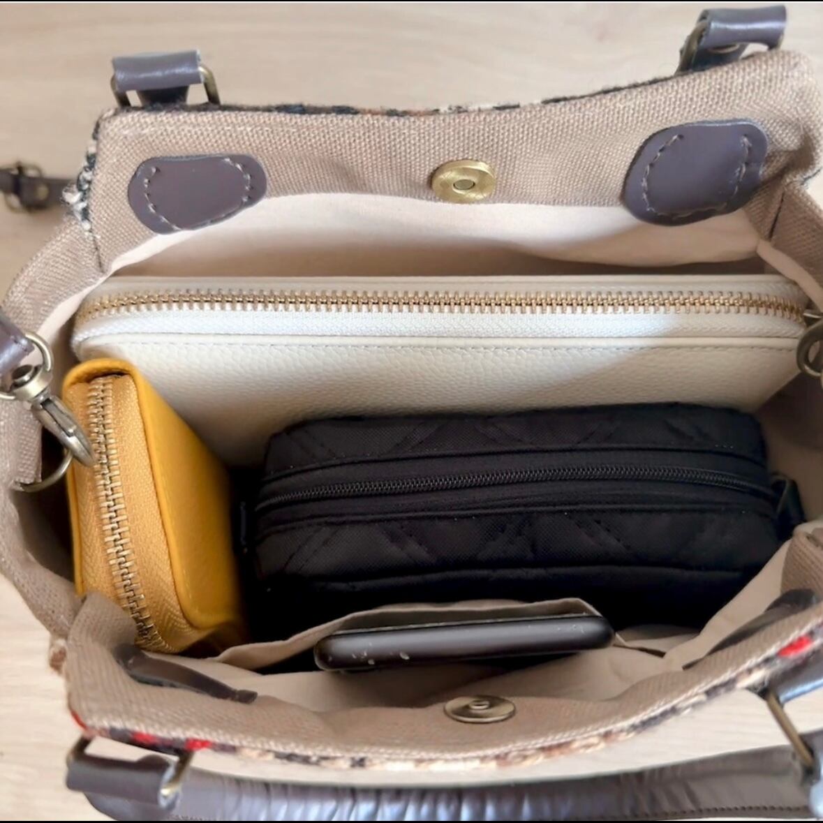 小さな内ポケットはカバンの中でなくならないよう鍵や財布などを入れておくなど何かと便利です