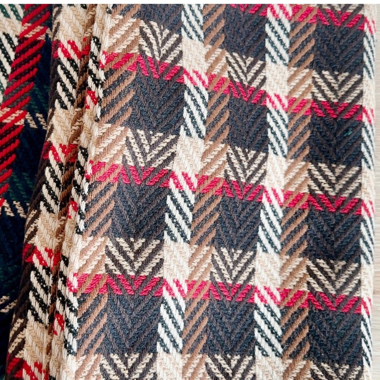 大きなチェックにヘリンボーン柄を合わせたレトロ感がたまりません…!
